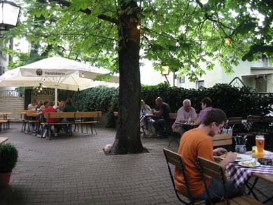 Neben Hofmann-Apfelwein aus dem Spessart, schenken wir für unsere Gäste Loscher-Pils aus Franken, Bitburger Pils und Münchner Hofbräu Hefeweizen vom Fass aus. Der Sommergarten lädt zum Verweilen unter wunderschönen Kastanien mit Blick auf historische Wandmalereien am Gasthaus ein. Gespeist wird gutbürgerlich, etwa das „Löwen-Dreierlei“ aus Handkäs’, Spundekäs’ und Fleischwurst. Oder Tatar, Sülze mit knusprigen Bratkartoffeln, Schnitzel oder „Leichtes“ aus der „Vitalküche“. Besonders Hungrige können ihre Steaks von Deutschen Jungbullen auch im 300 Gramm-Jumbo-Format bestellen. Die saisonal wechselnden Gerichte der Wochenkarte kosten als Mittagstisch – bei gleicher Portionsgröße wie abends – allesamt 6,90 Euro.